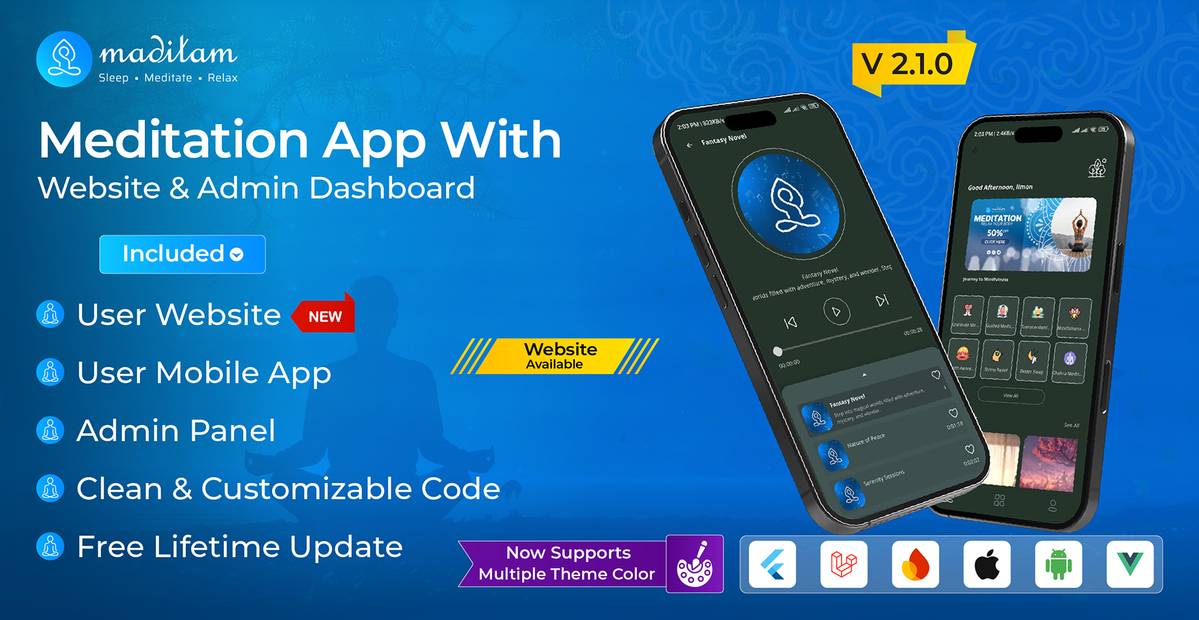 Maditam: Best Meditation App with web admin | Daily Meditations App | Music app with web admin