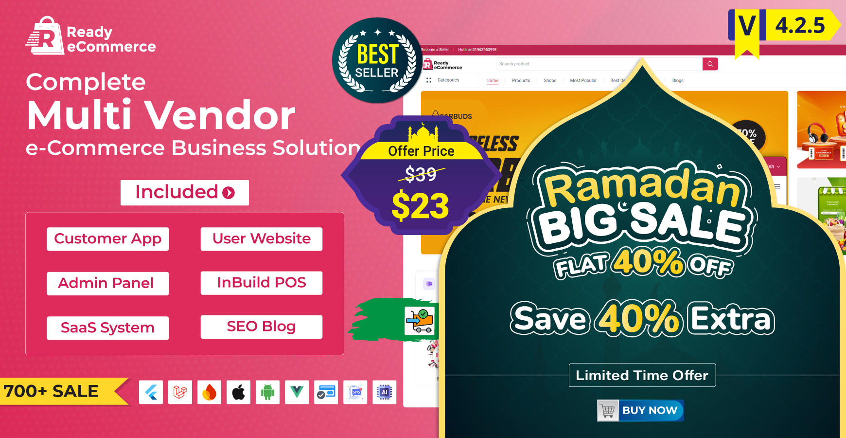 Ready eCommerce - Complete Multi Vendor eCommerce Mobile App, Customer Website with Store POS