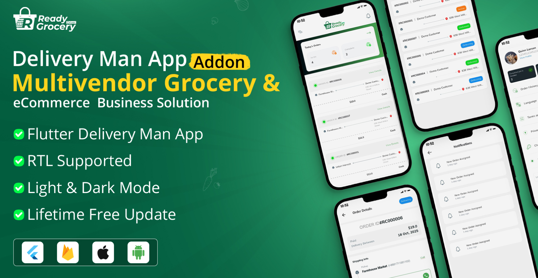 Ready Grocery Delivery Man App | Rider App | Delivery App Addon