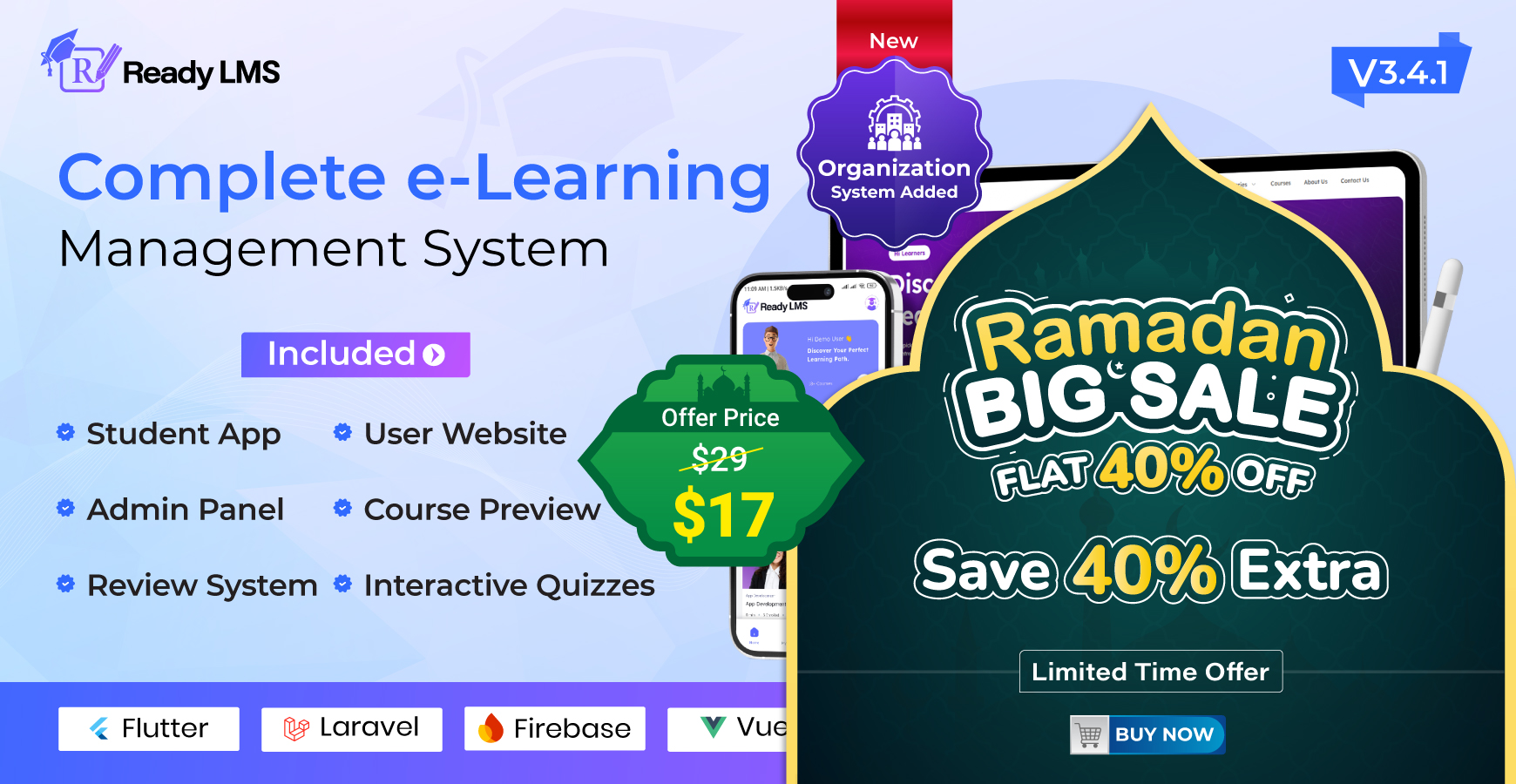 Ready LMS - Complete Learning Management System Websites, Mobile app with Admin panel