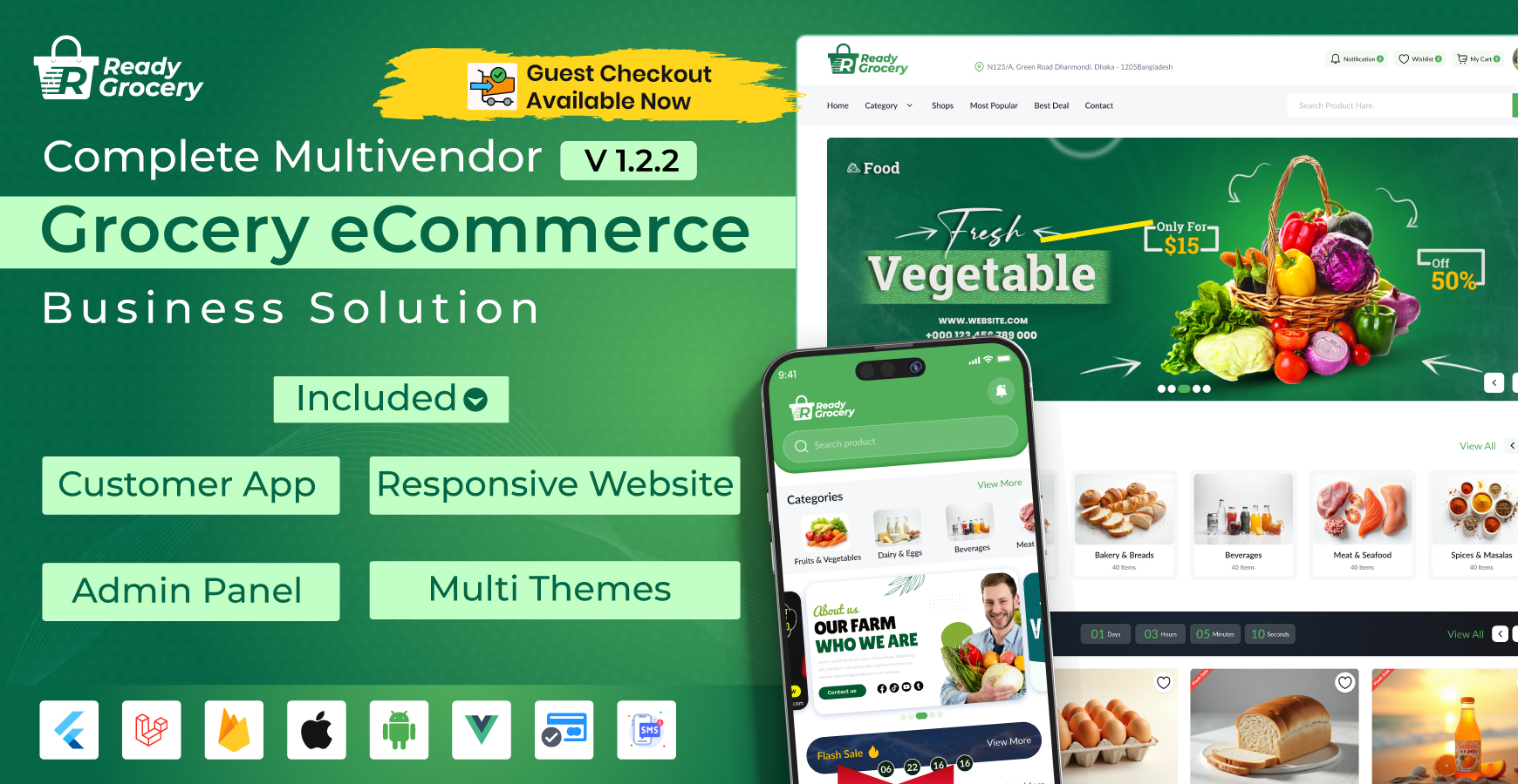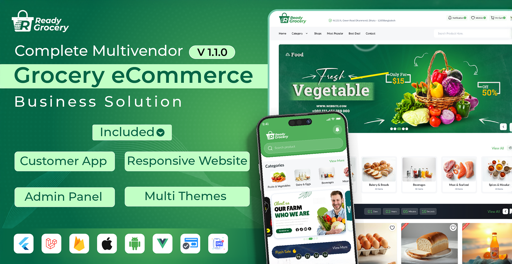 ReadyGrocery– Multivendor Grocery & eCommerce Mobile App with Website & Laravel Admin Panel